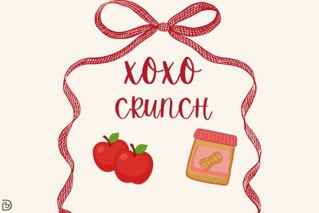 Today’s lunch feature is XOXO Crunch—fresh apple slices dipped with peanut butter.