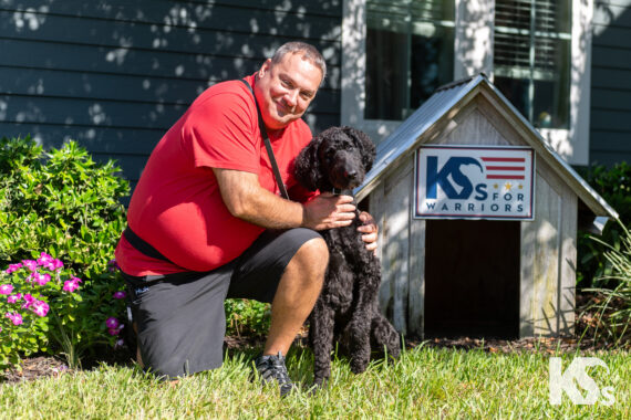Douglas graduated on June 5th of 2024 from K9s for Warriors and has been assigned to Warrior Johnathan. We were getting regular updates on him – he’s training to help a veteran with PTSD; he initially had a fear of ceiling fans but after a rewarding trip to Home Depot, he eased up and was not fixated on them; he’s been socialized at several parks and is very friendly with people and other pups.