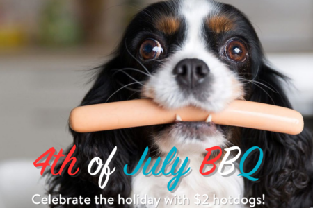 Join us Saturday, July 5th, for a themed barbeque. We are offering the pups $2 hotdogs in celebration of Independence Day!