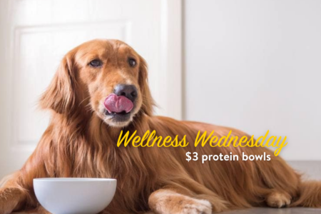 On Wednesday, July 16th, we are prioritizing your dog’s wellness by offering discounted protein bowls! These come with either chicken or salmon (your choice) and are fed at naptime. Protein, rice, and veggies make this lunch option a great snack to fuel your pup’s day of play!
