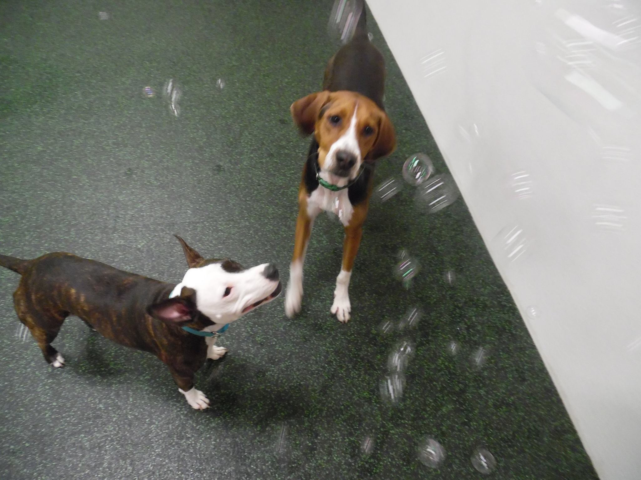Our facility features open, supervised playrooms where dogs are separated based on their size, temperament and play style. Your pup will enjoy hours of play and exercise in our off-leash open-play environment. We also offer quality boarding and doggie spa services.