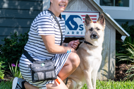 Sandy is a mixed breed who was rescued from a shelter to receive training through the K9’s For Warriors program. Some of Sandy’s largest challenges during training included becoming comfortable in large crowds, maintaining focus in distracting environments, and impulse control around squeaky toys! Despite the many challenges, she passed her final skills test with flying colors! Sandy graduated in June of 2023 and was paired with her warrior, Desarae, an Army Veteran from New York. They formed an immediate bond with each other and are both so thankful for this process and all of our amazing pet parents who made this lifechanging opportunity a possibility.