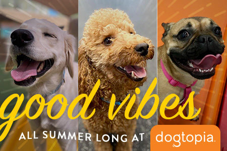 It’s summertime, and the livin’ is easy for Dogtopia dogs. We’ll be hosting a tropical-themed party with fresh dog-safe fruit to celebrate the start of summer! Our playrooms are always at the perfect temperature, so rest assured your furry friend is always safe from the heat.