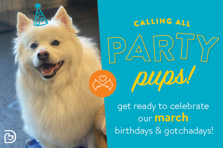 Whether your pup was born or adopted in March, we want to celebrate them! Bring your pup in on Tuesday the 31st of March and they’ll get a cute b-day pic to be shared on our IG and FB!