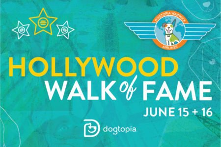 We’re going to the Hollywood and when we get there, your pup will enjoy an agility course on the Hollywood Walk of Fame to test their nose work (tunnels, hula hoops, cones and more)! Your dog does not want to miss this! Every dog who joins us today will receive a plane ticket to be entered in our giveaway for 5 awesome prizes. Winners will be drawn on June 30th.