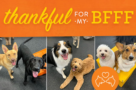 In honor of Friendsgiving, we’re hosting a special treat day for your dog and their BFFFs! Schedule your dog’s daycare today so they don’t miss out on the fun!